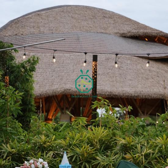 Synthetische Nylon-Reetdachmaterialien sind langlebig und können in Strandgebieten mit ausreichender Luftfeuchtigkeit 15 Jahre oder länger halten.